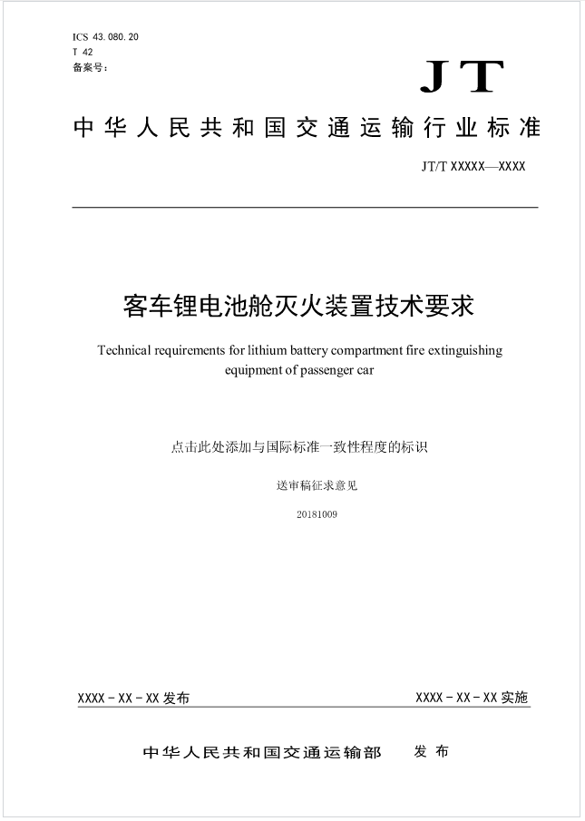 本次會(huì)議主要包括兩項(xiàng)內(nèi)容:1、編制組對(duì)標(biāo)準(zhǔn)送審稿情況說(shuō)明;2、修訂《客車鋰電池艙滅火裝置技術(shù)要求》具體內(nèi)容,并形成送審稿。