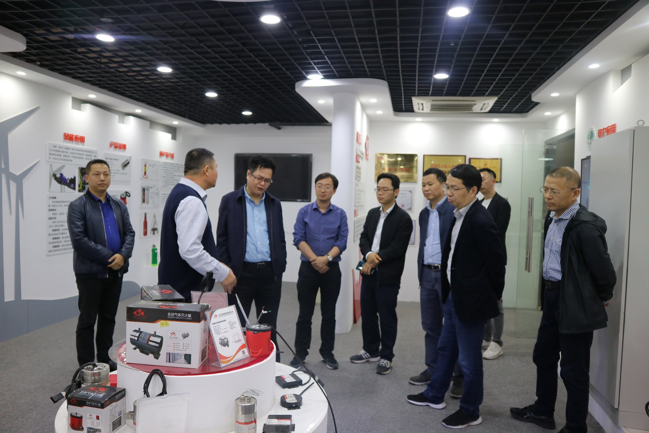 2019年11月4日下午,國(guó)網(wǎng)浙江電科院書(shū)記、副院長(zhǎng)毛南平、國(guó)網(wǎng)浙江省電力公司安監(jiān)部副主任顧天雄帶隊(duì)實(shí)地調(diào)研浙江華神消防科技有限公司,周建國(guó)董事長(zhǎng)帶隊(duì)熱情接待。
